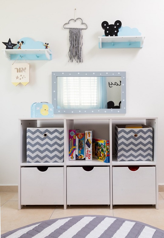 אם יש משהו שהחיים עם ילדים ודאי לימדו אתכם (או ילמדו מיד), הוא שהילדים שלנו "מגיעים" עם לא מעט חפצים. החל מבגדים לקיץ, חורף ומה שביניהם, דרך שלל צעצועים וכלה בספרים ומשחקי קופסא רבים. כפי שהורים רבים יעידו – לכל החפצים הללו יש נטייה לפרוש כנפיים ולעוף ברחבי החדר, וכמעט תמיד לנחות במקום אקראי (שאינו המיקום המקורי שייעדתם לו, כמובן). מה עושים? לוקחים את אלמנט האחסון בעת התכנון ודואגים למקומות אחסון ייעודיים ברחבי החלל. זה לא אומר שהחדר יהפוך למחסן ובו אינספור מגירות ודלתות, להיפך, היום יש פתרונות חכמים, אלגנטיים ואפילו אסתטיים שישמרו את חפצי הילדים במקום בטוח: הרחק מהישג ידו של האבק. כך למשל כדאי להתאים את הארון לצרכי הילדים המתגוררים בחדר, לערוך בו חלוקה חכמה שתאפשר לכם לאחסן בו יותר חפצים, להוסיף מדפים ברחבי החדר שישמשו להצבת ספרים או צעצועים נבחרים, לבחור מיטה עם תאי אחסון בנויים או מגירות אחסון נפרדות וכדומה.