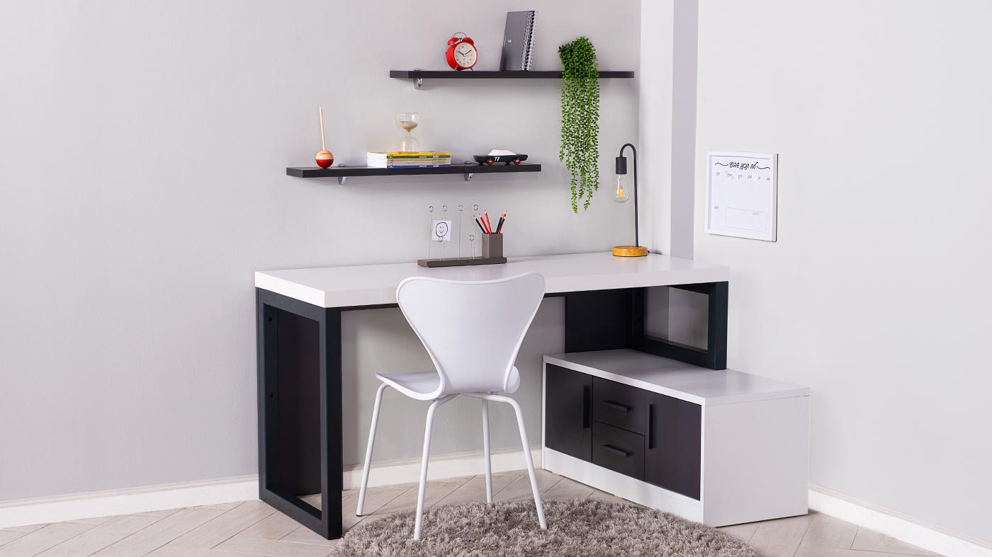 - לחדר קומפקטי שחשוב לשמור מסודר – בחרו בשולחן עם מגירות אחסון או יחידת מדפים, שיוסיפו לכם אפשרויות נוחות לאחסון.