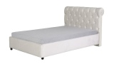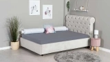 מיטה ברוחב וחצי מרופדת לנערות דגם "אמה" בסגנון נסיכותי עם ראש מיטה קפיטונז'. בסיס המיטה וראש המיטה עשויים מעץ לבוד (סנדביץ) עם ריפוד בד קטיפתי ורגלי פלסטיק.