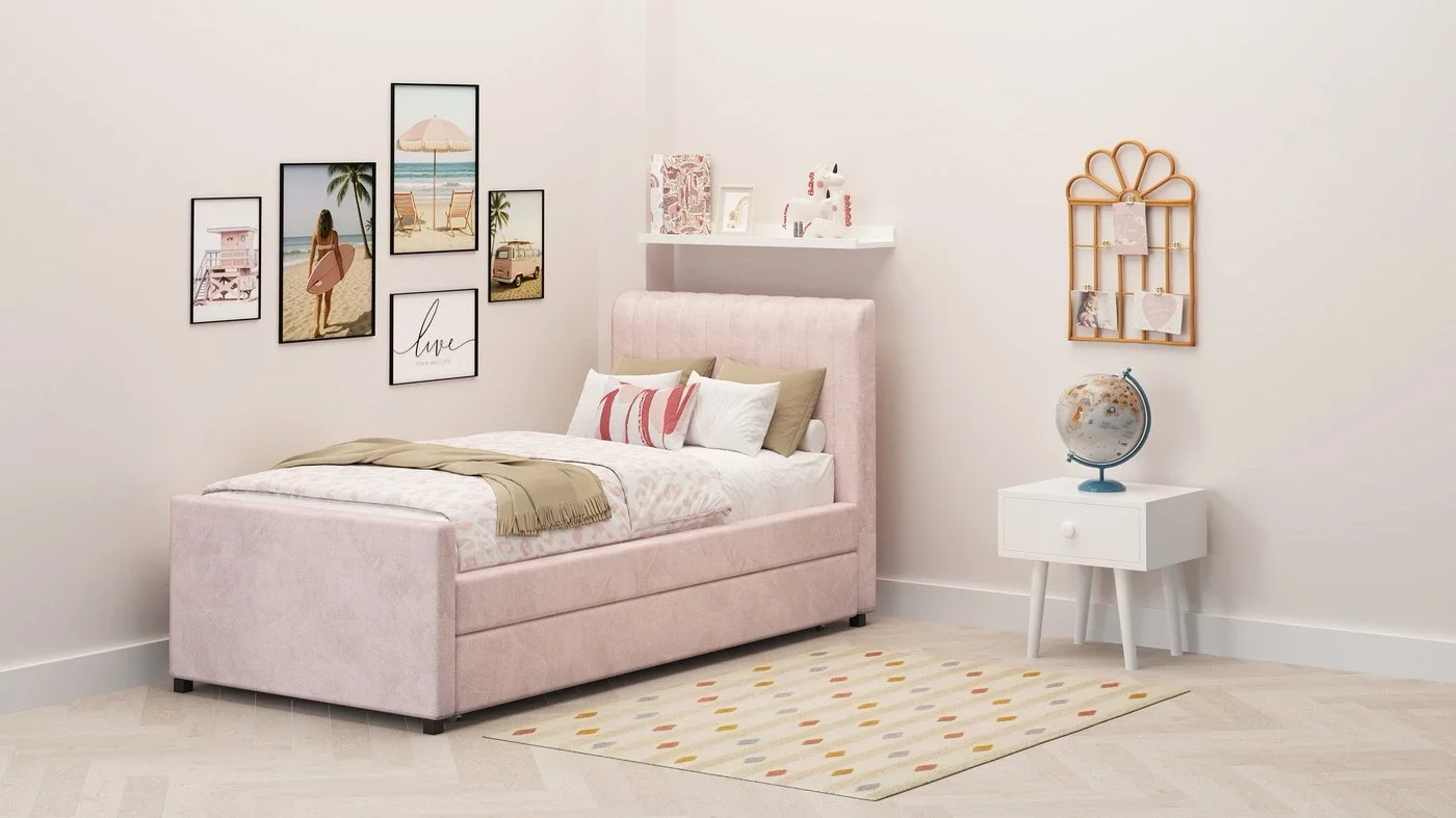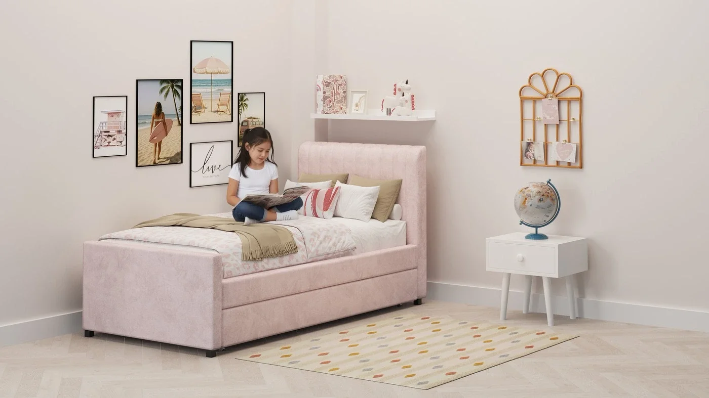 מיטה לילדים מרופדת דגם "נועם" עם מיטת ארגז אחסון.
