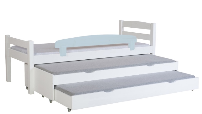 מיטת ילדים משולשת דגם "אופיר בייסיק". מתאימה ל-3 ילדים. עשויה עץ מלא. פרזול המיטה הינו פנימי ואסתטי ויוצר חיבור עמיד יותר של קורות העץ. בסיס המיטה מורכב מסלאטים עמידים המונעים הצטברות של לחות ועובש. מעקה המיטה נשלף ומתאים הן למיטה העליונה והן למיטה התחתונה (נגררת). מיטה נגררת סגורה מאחור למניעת כניסת לכלוך. למוצר זה יש 5 שנות אחריות (1 שנת אחריות מלאה בבית הלקוח + 4 שנות אחריות על חלקים בלבד) בהתאם לתעודת האחריות של עצמל'ה