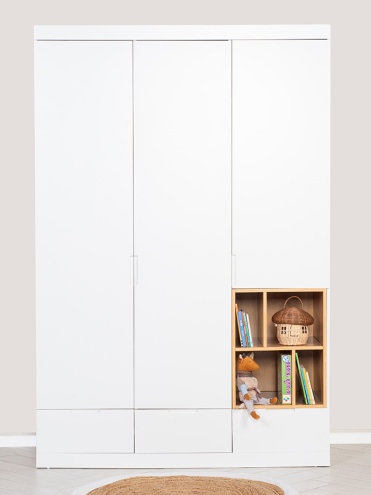ארון ילדים דגם "סול" מעוצב עשוי mdf. מעניק מראה שייקי לחלל החדר. הארון בעל נישה לאחסון של 4 מדפים ו-3 מגירות אחסון. לצורך הרכבת הארון יש לוודא שיש 10 ס"מ מרווח בין הארון לתקרה. לארון בגדים זה יש 5 שנות אחריות (1 שנת אחריות מלאה בבית הלקוח + 4 שנות אחריות על חלקים בלבד) בהתאם לתעודת האחריות של עצמל'ה.