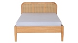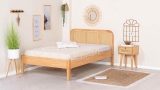 מיטה זוגית דגם "ראטן", מיטת מעוצבת בסגנון בוהו עכשווי. מסגרת ורגלי המיטה עשויים עץ מלא. דפנות המיטה עשויים מעץ סנדוויץ' מצופה מלמין ובשילוב דמוי ראטן בצבע טבעי.