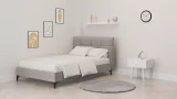 מיטה נוער מעוצבת דגם "ריף". פרזול המיטה הינו פנימי ואסתטי ויוצר חיבור עמיד יותר של קורות העץ. בסיס המיטה וראש המיטה עשויים מעץ לבוד (סנדביץ) וריפוד דמוי פשתן.