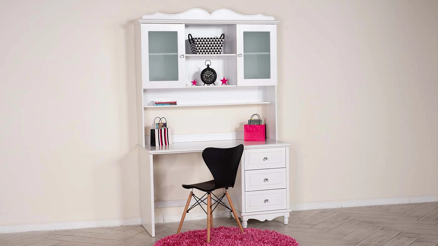סט שולחן כתיבה ויחידת מדפים דניאל | לבן