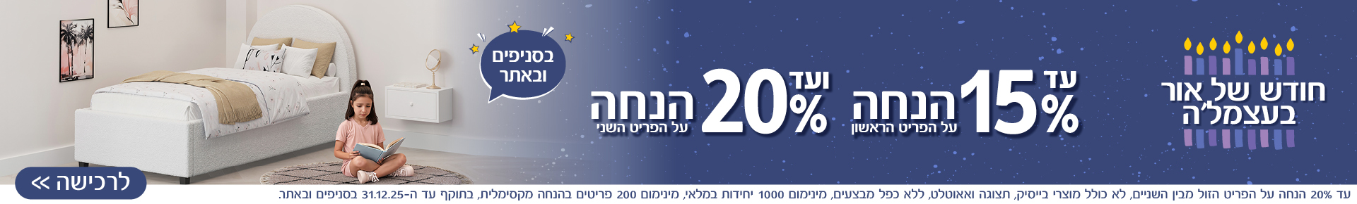 כאן תוכלו לראות את המבצעים מתעדכנים מעת לעת, מוצרים מיוחדים בהנחה, פרטי מבצע החודש ומידע נוסף ללקוחות רשת רהיטי הילדים והנוער.