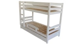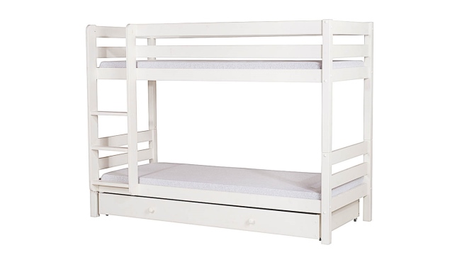 מיטת קומותיים מעוצבת לילדים דגם "ירדן". עשויה מעץ מלא. ניתנת לפירוק ל-2 מיטות נפרדות בגבהים שונים. מיטות הקומותיים של עצמל'ה הן היחידות מסוגן שעברו בדיקת עמידות בתקן הישראלי למיטות קומותיים. בסיס המיטה מורכב מסלאטים עמידים המונעים הצטברות של לחות ועובש. עובי הקורה: 21 מ"מ. ארגז מצעים הניתן לשימוש גם כמיטה נגררת. הסולם ניתן להרכבה בצד שמאל בלבד.